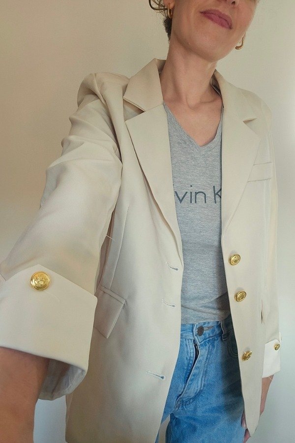 Blazer sastrero forrado en el interior.con bolsillos y botones dorados.