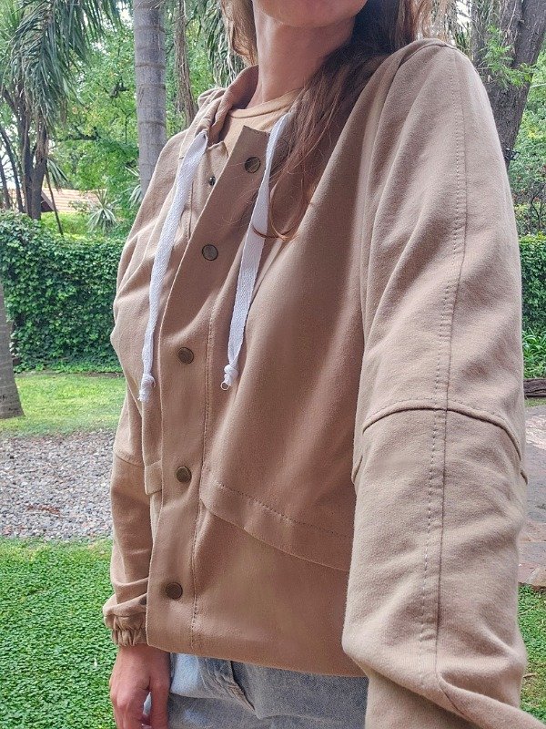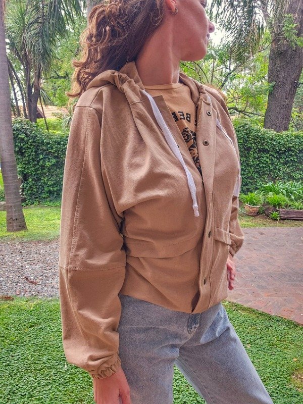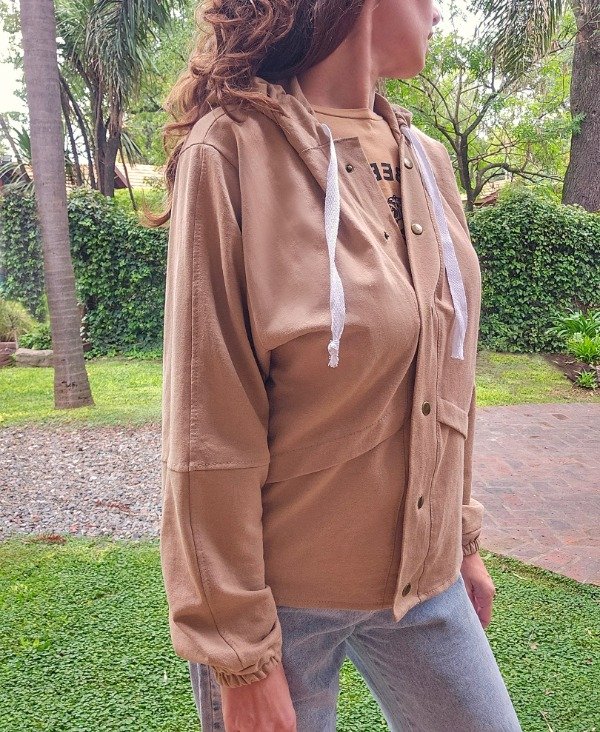 Campera confeccionada en algodón rústico con botones a presión en el frente y puños elastizados.