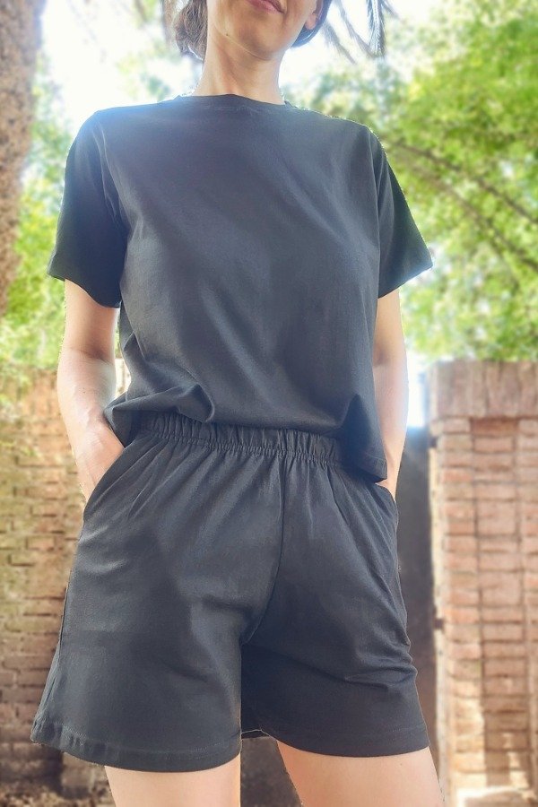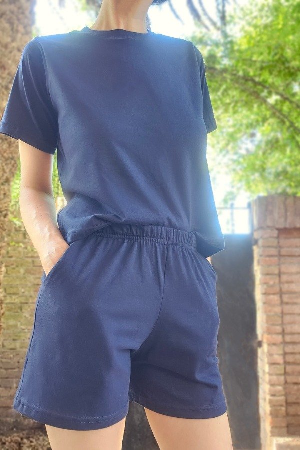 Remera y short fabricados en jersey 100% algodón peinado.