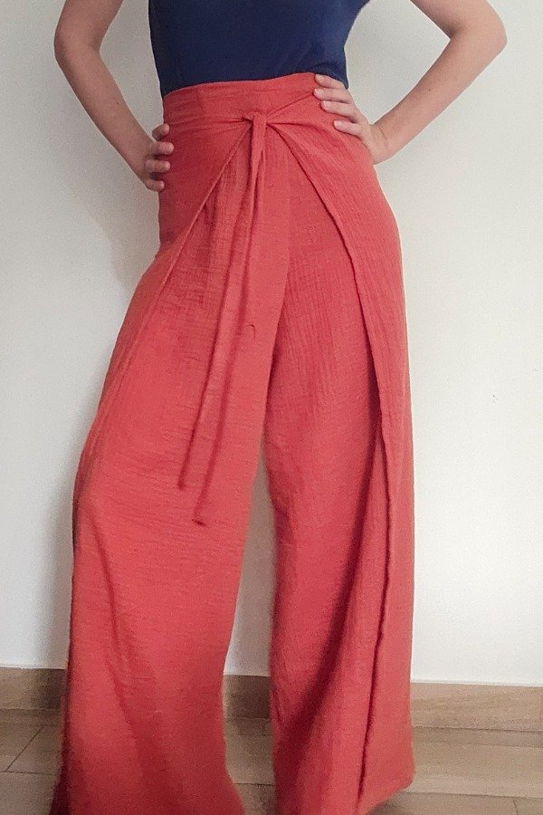 El pantalón chiripa se adapta a diferentes cuerpos por su diseño envolvente y ajustable (se dobla sobre sí mismo en los laterales, tomando la forma del cuerpo y se ata adelante, lo que permite ajustar el ancho) creando un efecto tableado tipo palazzo que se amolda a la figura sin ser ajustado, ofreciendo libertad de movimiento y comodidad, ideal para cuerpos diversos gracias a su cintura elástica y la forma en que se ajusta, sirviendo como una prenda versátil y "talle único".